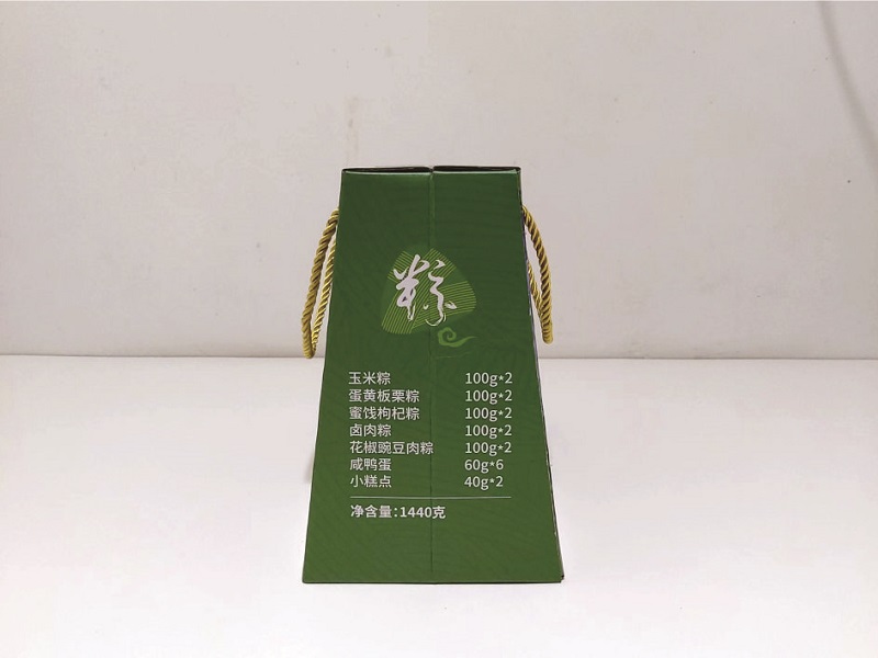 包装是产品的灵魂,不能马虎,礼盒表面亚膜工艺,使盒子更有质感,搭配金黄三股手提绳,美观大方,承重性强,粽子礼盒定制加强三层瓦楞,坚挺厚实,整洁干净。粽子包装盒定制平面图展示(如下)