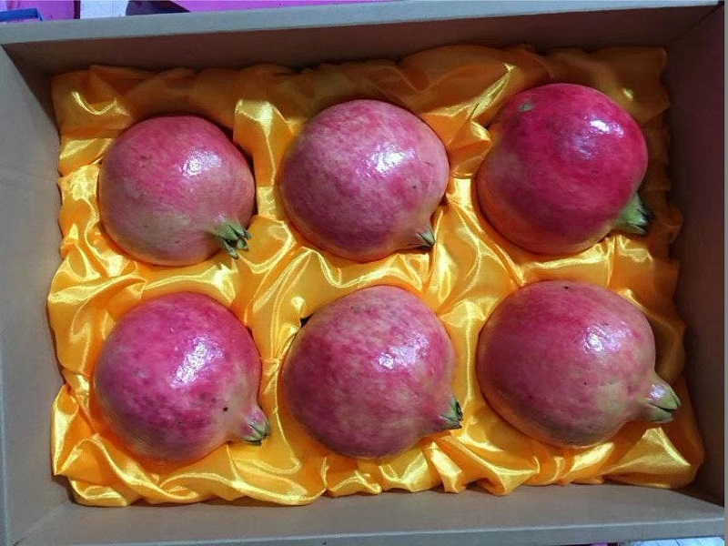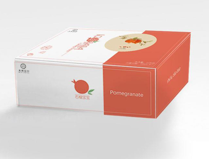 石榴包装盒制作,石榴包装制作br/>1、材质:300克灰纸裱E瓦楞;2、工艺:印刷、亮膜