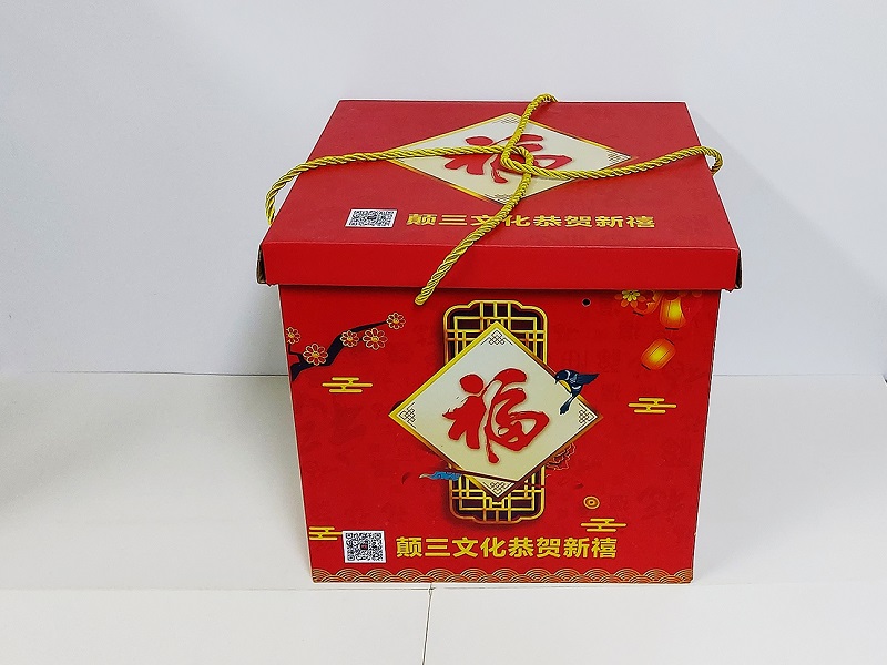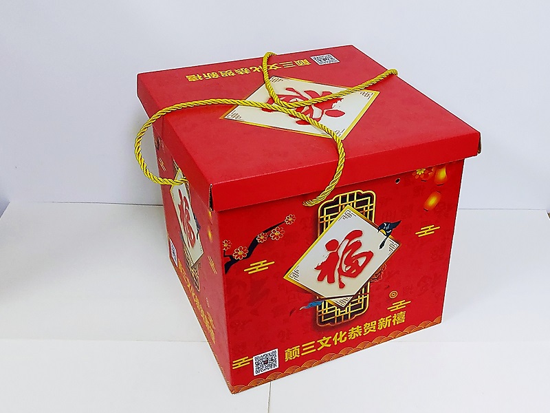 很多公司也对辛苦一年的员工们或是合作的客户准备了丰富的年货,从春联到各种零食干果,品类丰富,暖意浓浓,各种喜庆的年货礼盒也为春节增加不少气氛,如下图,天地盖的年货礼盒定制款式方便携带,内部空间较大,可以置放各种类型的年货礼品,大面积的红色代表着吉祥、喜庆,大大的"福"字为"福气",无论是现在还是过去,都寄托了人们对幸福生活的向往,也是对美好未来的祝愿。民间为了体现这种向往和祝愿,在门前贴上福字.甚至到后来将"福"字倒过来贴,以求谐音"福倒了","福气已到".吉祥如意,好事连连。